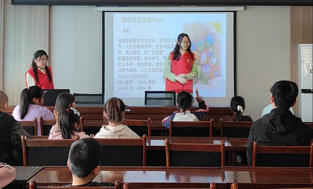 活动中,我院发挥专业特色,依托“社区英语角”,学院志愿者运用自身专业知识,使用外语讲述中国传统节日故事,使小朋友们了解清明节,呵护儿童快乐成长。再由志愿者为小朋友们讲解部分英语单词与句子,小朋友们认真听讲,学会了许多新的知识,也对英语和中国传统节日的融合展现出极大的兴趣。讲解结束后,为了让小朋友们加深对所学知识的印象,志愿者们特别准备了美味的青团给小朋友们品尝,使大家对于清明节的传统习俗有了具象化的认识。