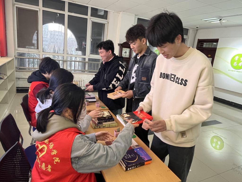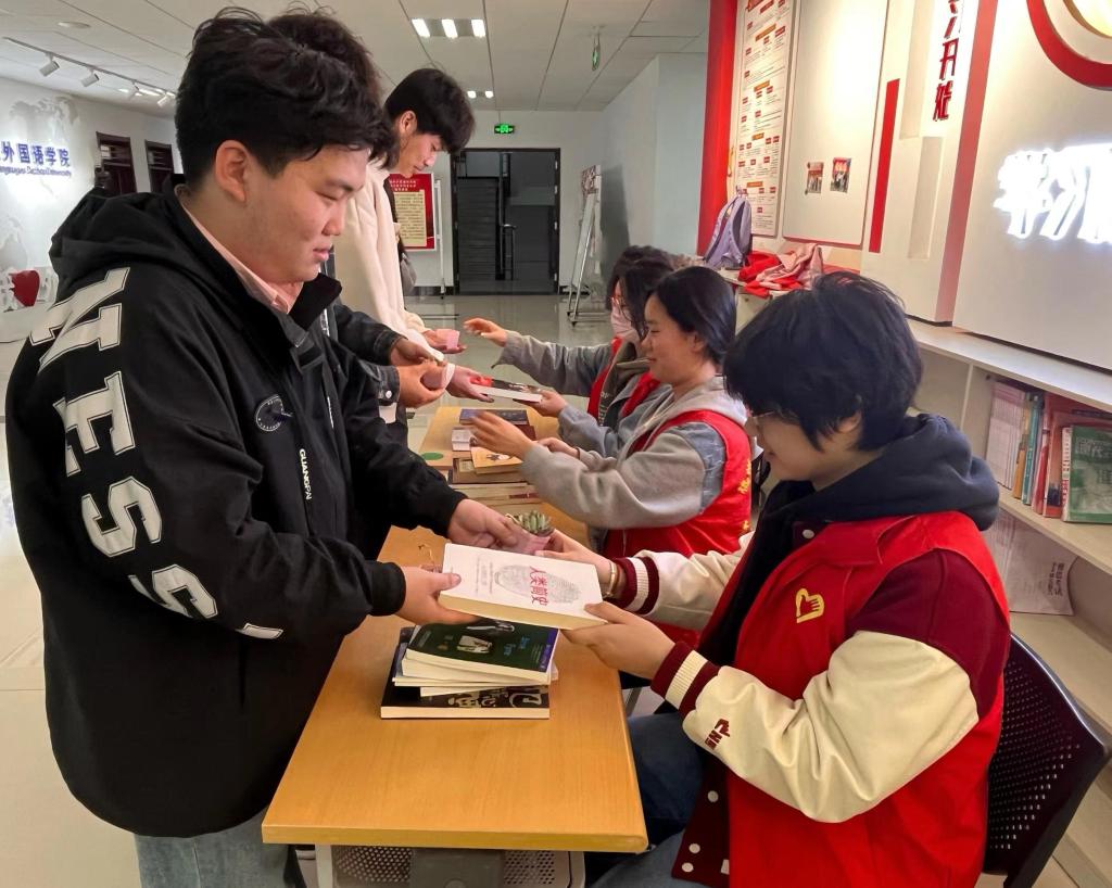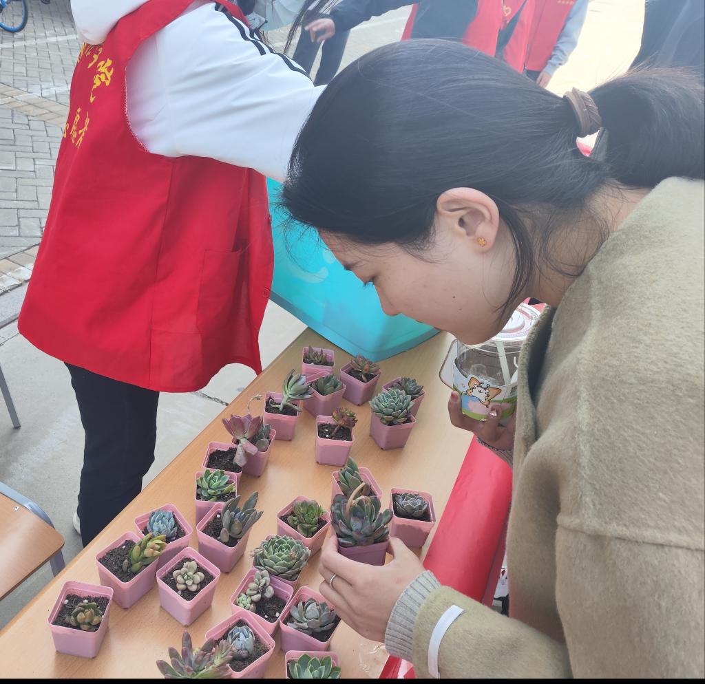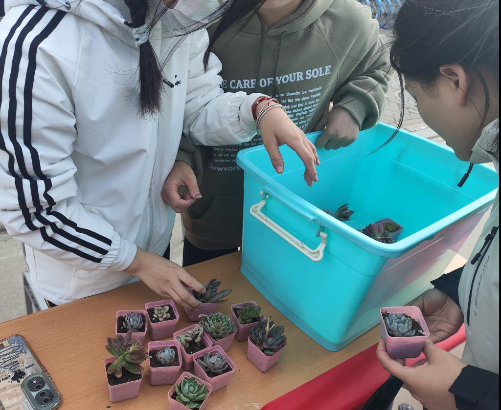 在博文楼图书漂流角处,我们设立捐赠点,接受全校学生捐赠的图书,同学们积极参与,捐赠出自己闲置的好书,并用便签写下了荐语和对他人的鼓励,志愿者们细心地记录每一本的信息,并对书籍进行分类整理,确保每一本书都能找到最适合它的读者。活动最后,每一位参加捐书活动的同学可在博文楼北侧门口前领取一盆小多肉作为纪念,让绿色扮靓大家的美好生活。