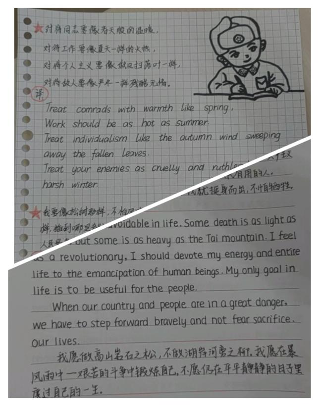 该活动面向bbin游戏官网的官方的全体学生,参与者自行选择一篇雷锋日记,运用所学语言进行翻译。活动过程中,同学们翻阅雷锋日记,了解雷锋无私奉献、助人为乐的感人故事;翻译时结合所学知识,巩固加深,亦通过查询资料学习到新的表达,锻炼了翻译书写能力。同学们将热情与敬佩融入笔墨,将故事中的雷锋精神翻译展现,让雷锋故事以另一种语言熠熠生辉。