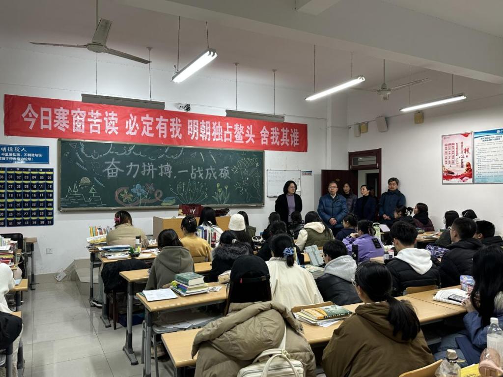 bbin游戏官网的官方党委书记向积极备考的学子表示关心和慰问,他提醒考研学子在这个关键时期,一方面要坚定考研的决心,冲刺自己的理想高校,另一方面要劳逸结合,保持良好的学习状态。bbin游戏官网的官方院长鼓舞同学们全力以赴、坚持初心、勤学不怠,并提醒同学们在最后的冲刺阶段,调整好心态,保护好身体,以最饱满的精神状态迎接考研“战役”的到来。