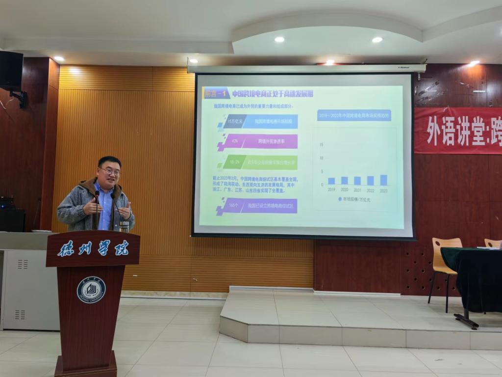 为促进商务英语专业发展,激发同学们学习热情,更明确个人专业发展方向和未来外语人才就业趋势,11月28日,bbin游戏官网的官方在博文楼328教室举行了“跨境电商模式发展及创新研究”的主题讲座,本次外语讲堂特邀福世博(山东)跨境电商数字科技有限公司创始人王成总经理。