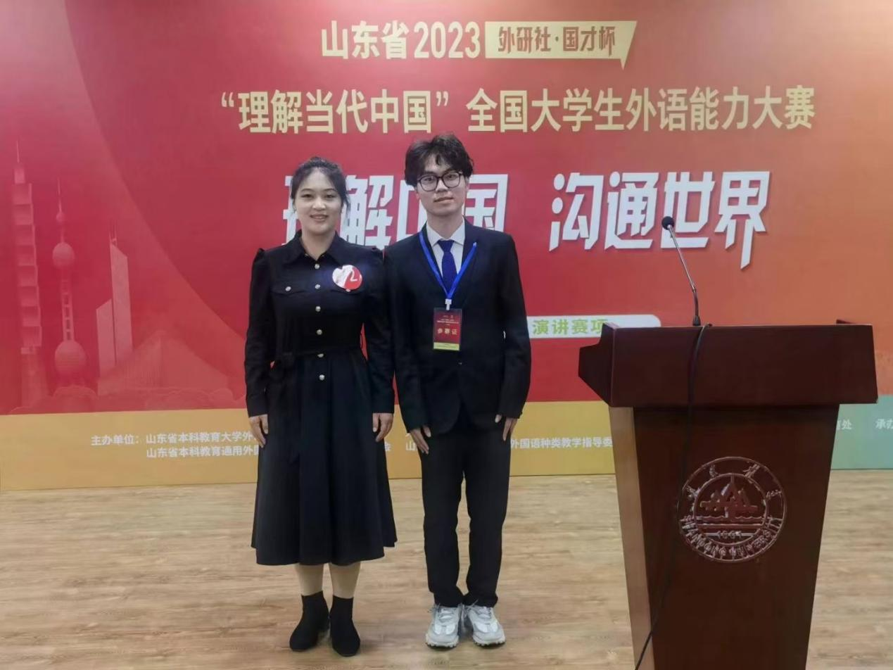 近日,2023“外研社·国才杯”“理解当代中国”全国大学生外语能力大赛——英语演讲、写作、阅读、口译、笔译以及多语种俄语6项比赛的山东赛区复赛落下帷幕。来自全省76所高校的753名学生参加了此次大赛。经过激烈角逐,我校学子杨柳获英语演讲大赛山东赛区二等奖、张霖轩获英语口译大赛山东赛区三等奖、杨越涵获英语笔译大赛山东赛区三等奖、吴爱宇获英语阅读大赛山东赛区三等奖,陈昌木、李菁涵、郑利彩、任祥瑞、张一诺以及乔学广和李恒洋分获英语演讲、英语写作、英语阅读、英语笔译、俄语大赛山东省复赛优胜奖。
