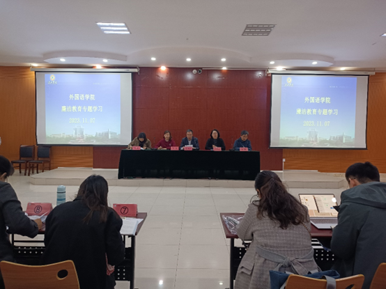 2023年11月7日下午,bbin游戏官网的官方在博文楼328报告厅召开全体教职工会议。会议开展廉政教育专题学习。会议由bbin游戏官网的官方主要负责人主持,全体教职工参加。