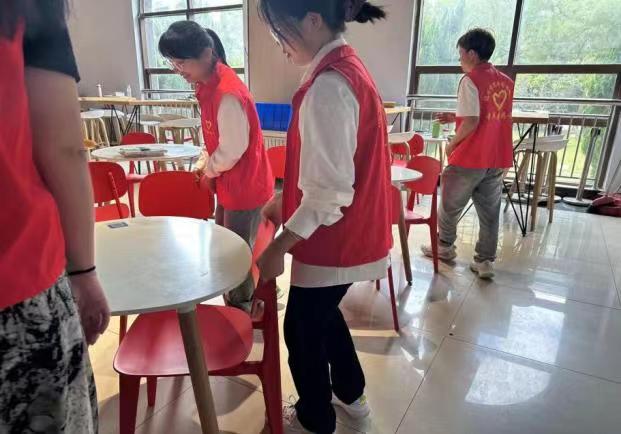 我院也开展了“文明用餐,俭以养德”的主题活动,餐厅的环境需要文明维护。餐厅是学校人流量较大的区域,在这里,我们始终强调节约粮食,倡导光盘行动。同学们分工合作,清理桌面卫生、收拾餐具,摆放餐椅,努力为下一位就餐的同学提供干净的桌椅,为我院师生提供舒适的就餐环境。同学们意识到了文明就餐的重要性以及提高了同学们的素养。