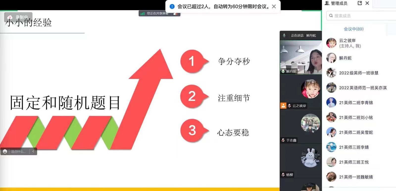 第十一届山东省师范类高校学生从业技能大赛省级决赛落下帷幕。为进一步发挥朋辈榜样的示范引领作用,提升教学技能,发展师范特色,8月7日,bbin游戏官网的官方组织开展师范生从业技能大赛朋辈经验交流分享活动。