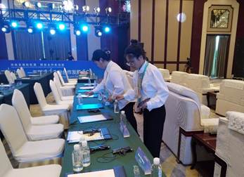 大会期间,bbin游戏官网的官方志愿者们承担了大会前期的准备、协助布置大会会场和晚宴、引领各国领导前往会场等工作,为学生的外语应用能力实践提供了良好的平台。活动中,同学们积极主动、细致用心、甘于奉献,为本次大会顺利进行提供全方位的服务保障,充分展现出我院青年志愿者们严谨负责、热情周到、朝气蓬勃的良好精神风貌。