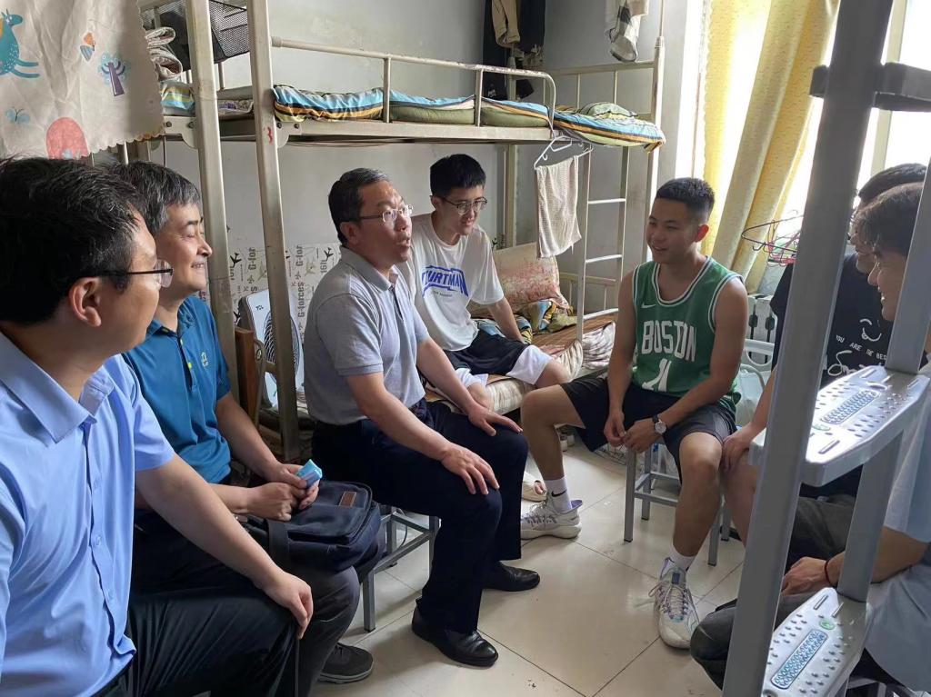 为进一步做好毕业生离校教育管理工作,了解毕业生动态、帮助毕业生解决其所遇到的问题,确保毕业生安全、平稳离校,2023年6月14日,bbin游戏官网的官方党委书记张国强、院长张锦辉、副书记贺昱、副院长宋霁以及辅导员老师杨康平、张强前往毕业班宿舍进行走访。