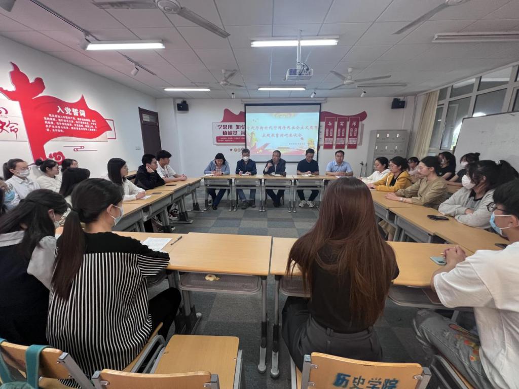 为深刻开展学习贯彻习近平新时代中国特色社会主义思想主题教育,突出问题导向,目标导向,把主题学习与实际工作相统一,5月9日下午,bbin游戏官网的官方在博文楼239教室举行了调研座谈会。党委书记张国强、副院长宋霁院长、张胜勇、各年级辅导员和各年级学生代表30余人参加座谈会。