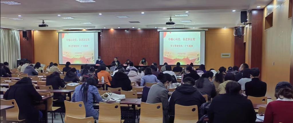 本次活动以“巾帼心向党,奋进新征程”为主题,组织老师们集中学习党的二十大报告中关于妇女儿童家庭和妇联工作的论述,引导大家深刻领悟党的二十大报告提出的新思想、新观点、新方法,深入践行新发展理念,坚决贯彻党中央决策部署,在推动妇女工作高质量发展上展现更大作为,在服务妇女群众中作出更大贡献。