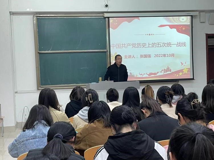 10月11日下午,bbin游戏官网的官方党委书记张国强在博文楼227教室以《中国共产党历史上的五次统一战线》为主题给入党积极分子、学生会各部长上了一堂生动的党课。