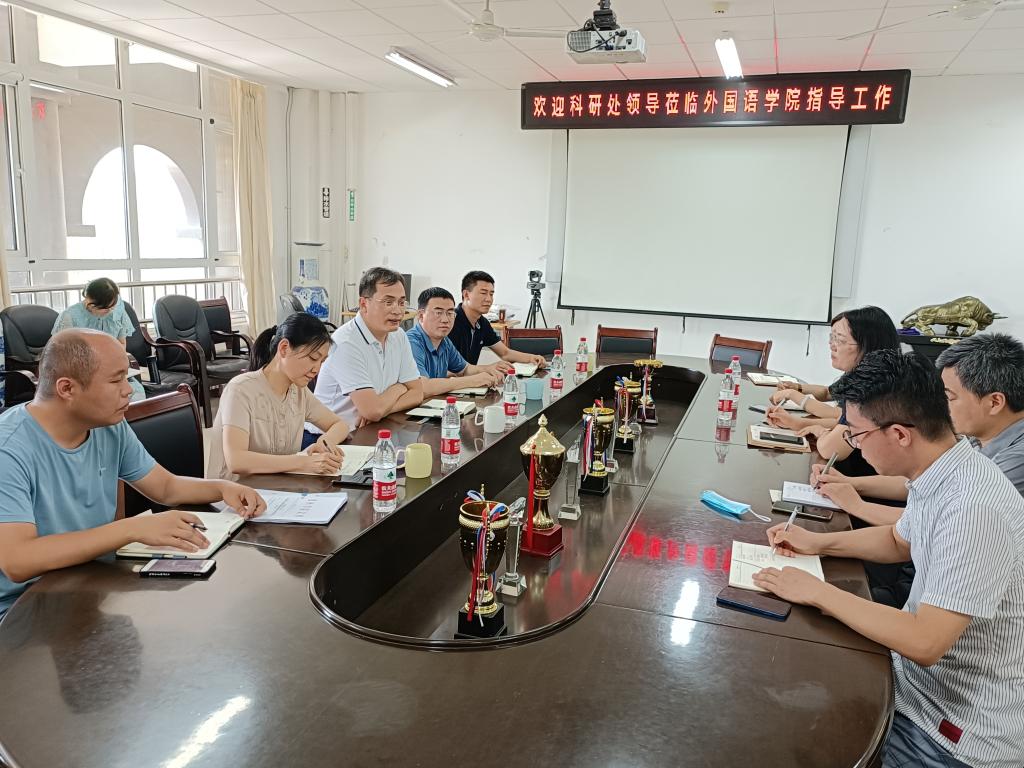 bbin游戏官网的官方主要负责人从学科建设、科研团队、科学研究、服务地方等方面汇报了学院发展现状及下一步的工作思路,详细介绍了外语学科服务地方经济社会发展等方面的一些尝试和做法,通过联系企业设立培育项目鼓励教师进行横向课题的开展,加强团队合作,促进学院科研工作创新发展。