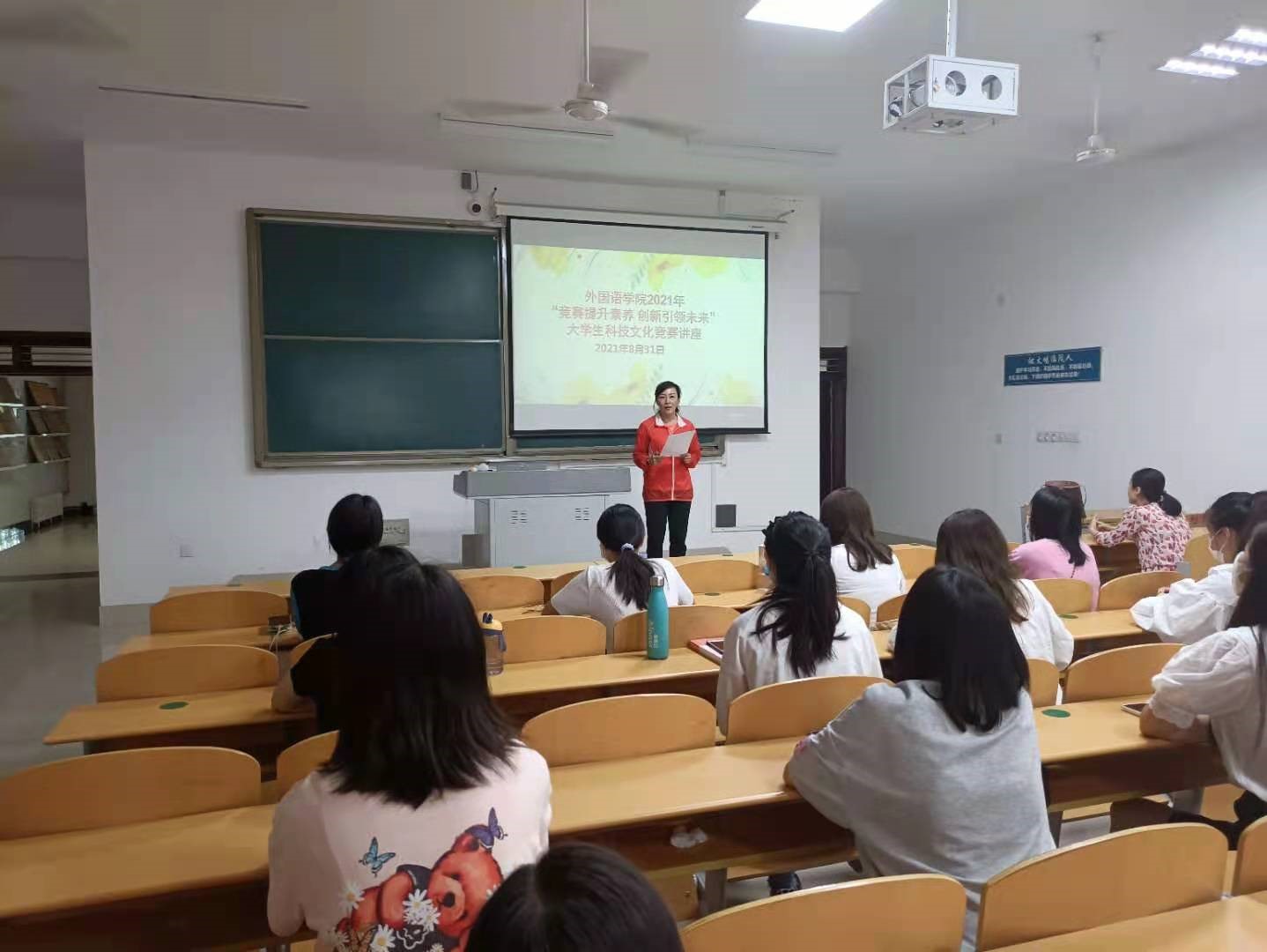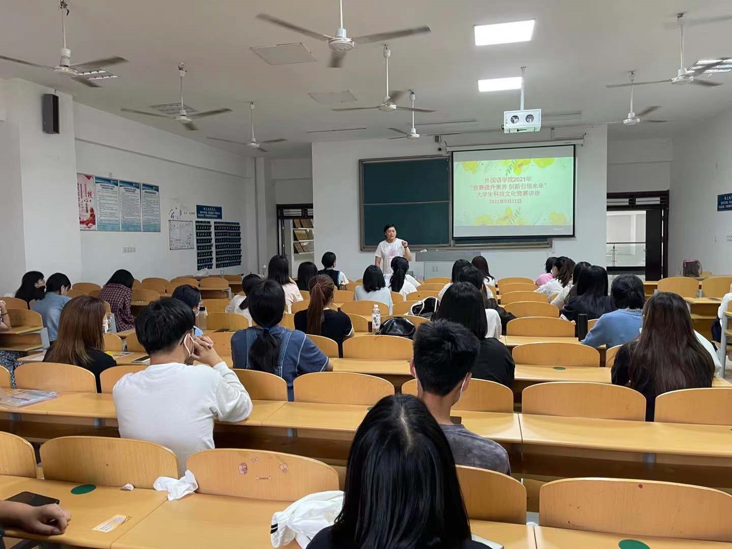 为贯彻落实学校“三位一体”的创新创业教育体系,有力推动bbin游戏官网的官方创新创业工作和大学生科技文化竞赛工作,更好地培养创新型应用型人才,为2021级新生提供了解竞赛,认识创新的平台,我院于8月31日下午在博文楼225教室组织举办了“竞赛提升素养 创新引领未来”大学生科技文化竞赛讲座。外院各专业的学生代表以及来自其他学院的共60余名同学参加了本次讲座。bbin游戏官网的官方贺昱副书记主持活动并作开场讲座,盖颖颖老师和杨康平老师分别进行讲座报告。