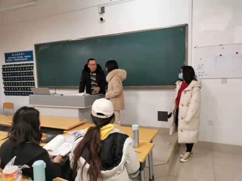 2021年3月1日,新学期开始,为了更好地开展学风建设专项检查,bbin游戏官网的官方李想副书记带领各年级辅导员进行新学期第一次查课。各级辅导员老师关注学生上课实时情况,带领督察部人员在博文楼有课班级教室进行考勤抽查,进入班级询问学生以及课程情况,与学生进行亲切交谈,使学生们更快地融入校园生活。现场督察部成员与各班级负责人核对人数,在领导老师的带领下有条不紊地开展各项工作。
