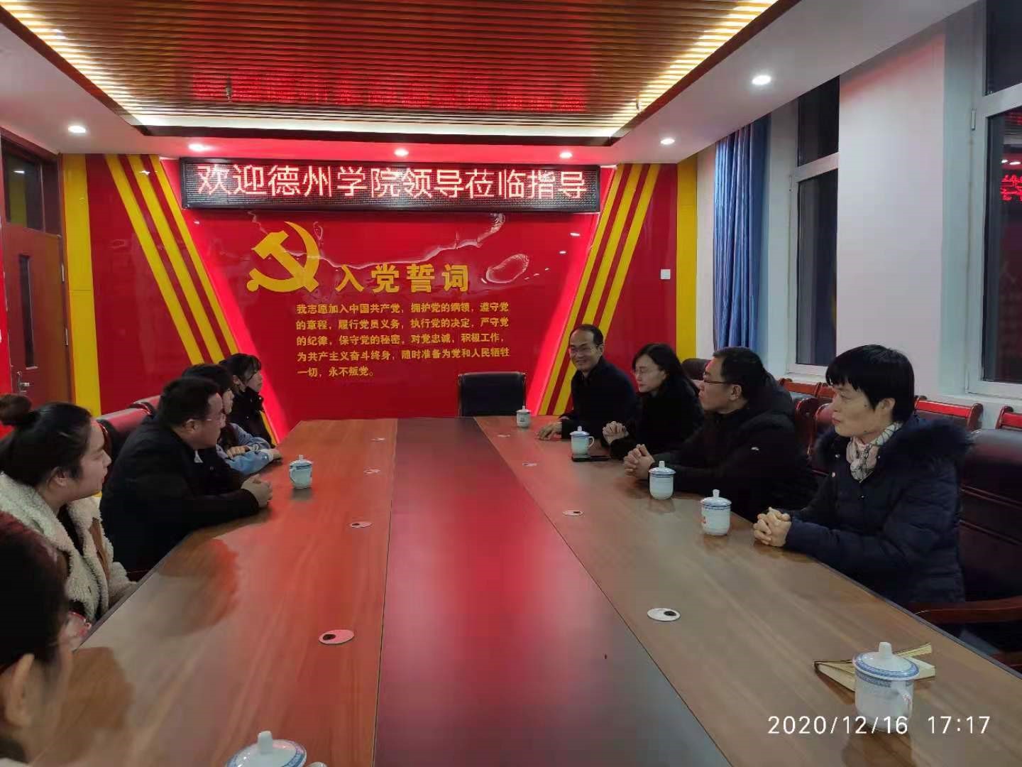 2020年12月16日下午,我院书记、副院长等一行四人在经开区社会事务服务中心相关人员陪同下,到经开区中小学看望实习生,并与实习学校领导及教师座谈交流。