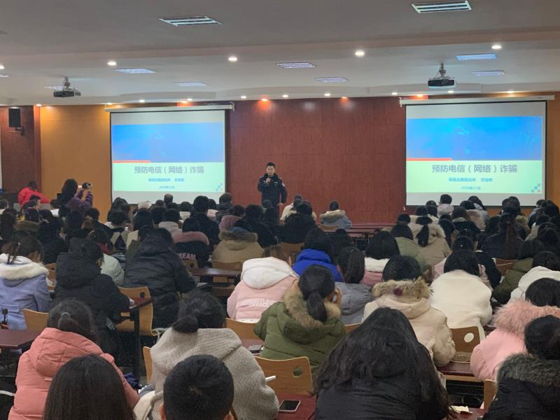 为进一步增强学生的安全防范意识和防骗能力,2019年12月16日下午,bbin游戏官网的官方在博文楼347教室举办预防电信(网络)诈骗专题讲座。讲座邀请德城分局湖滨北路派出所苏宝彬警官主讲,bbin游戏官网的官方19级全体师生参加。