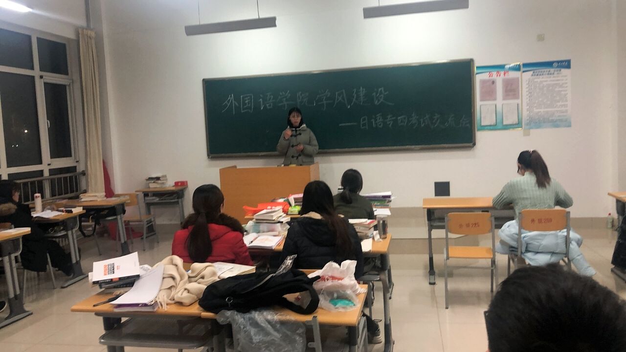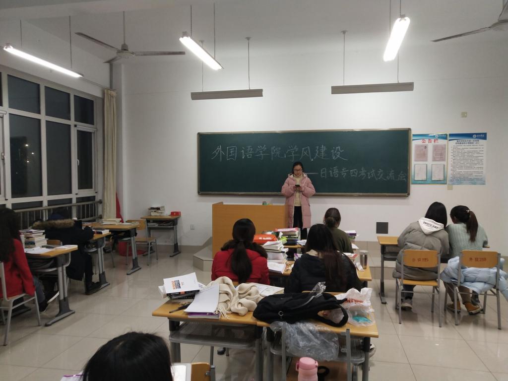 为了让同学们更好地掌握日语专四的考试技巧,增强同学们对专四考试的信心,调整考前心态。bbin游戏官网的官方特于2019年12月10日在博文楼213教室举行了bbin游戏官网的官方学风建设——日语专四考试交流会。