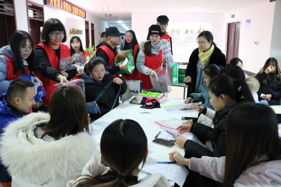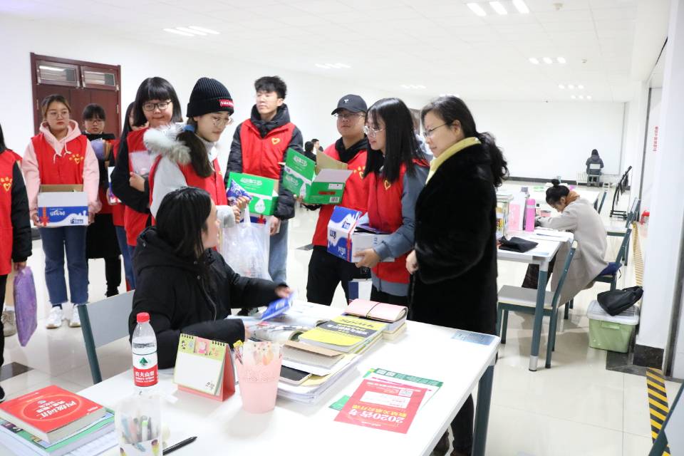 “不忘初心,坚守信念”,距离2019年考研倒计时10天,为鼓励考研同学树立冲刺信心,取得良好成绩,12月10日下午,bbin游戏官网的官方在博文楼开展为考研学生送温暖活动。在团总支书记张萌萌的带领下,与青年志愿者来到考研自习教室慰问备考学子,将“温暖”送到每一位考研学生手中。