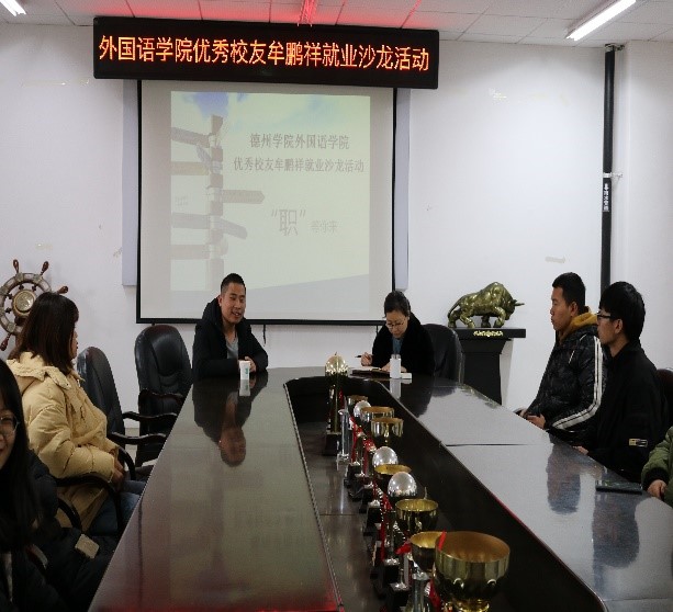 12月5日下午4点,在博文楼212会议室举行了bbin游戏官网的官方优秀校友牟鹏祥就业沙龙活动。参与该活动的有我校优秀毕业生牟鹏祥学长,bbin游戏官网的官方团总支书记张萌萌老师以及大三大四优秀学生代表。