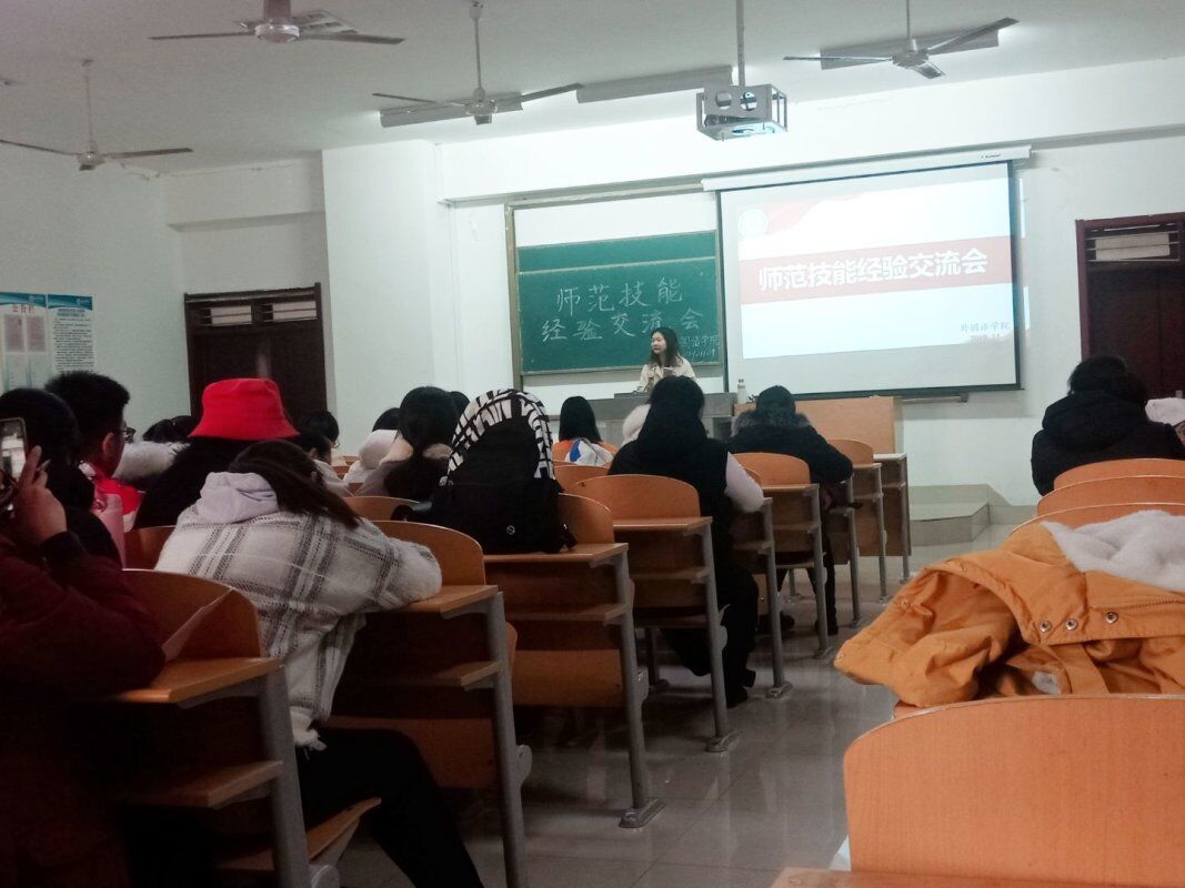 11月19日我院举办了师范技能经验交流会,此次交流会邀请了在师范技能大赛中取得优异成绩的两位学姐,结合自身参赛经历,分享专业技能与技巧。此次交流会中我们从两位学姐落落大方、绘声绘色、幽默风趣的讲解中看到了优秀教师的姿态。此次交流会过程中,同学们积极与学姐互动,提出自己的疑问,学姐们耐心解答。 通过此次交流会同学们受益匪浅,加强了师范生的职业技能,为同学们以后顺利进行的师范技能考核打下了坚实基础,促进了我院学风建设工作的开展。