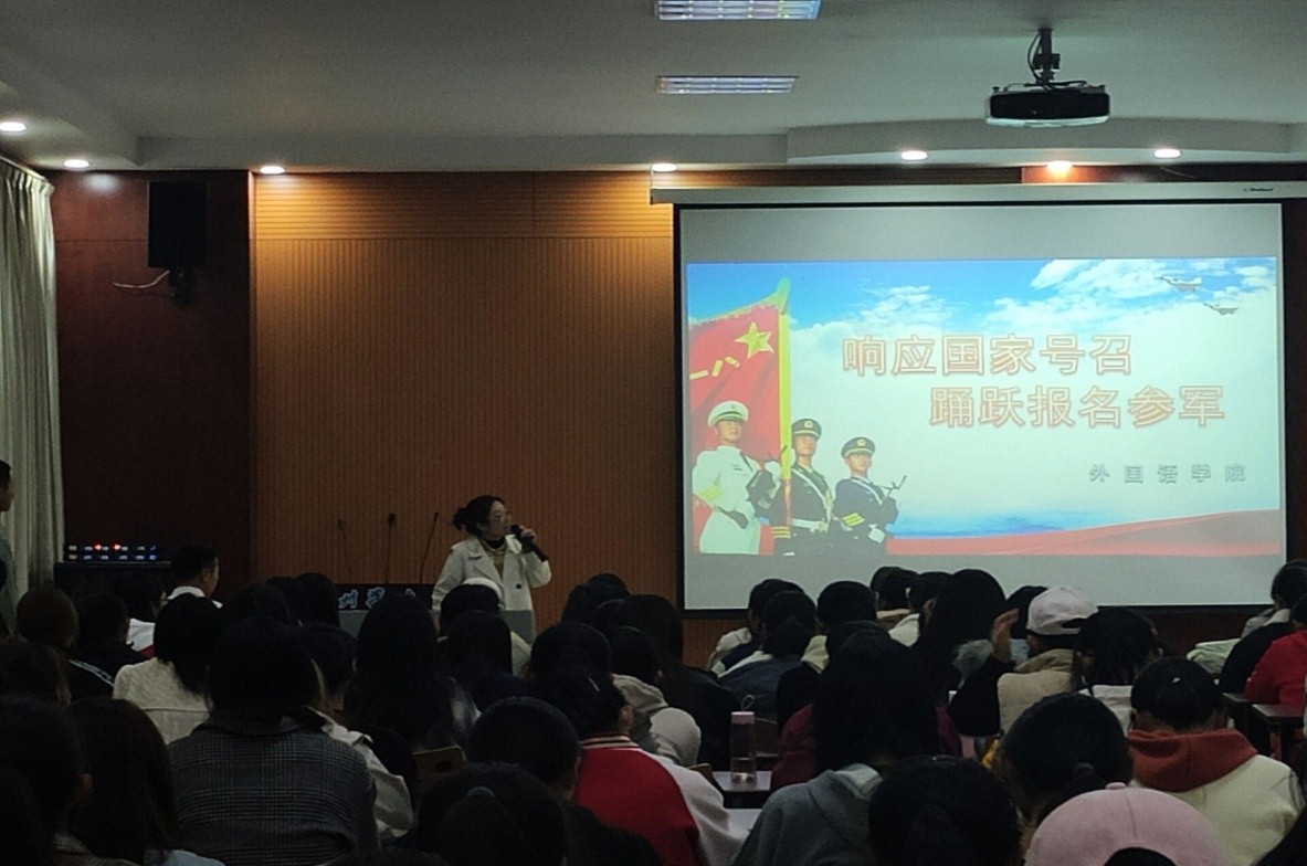 最后,朱馨馨老师为同学们解读了征兵的相关政策,介绍了参军条件及优惠政策,勉励青年学生向身边的优秀大学生士兵学习,积极响应习近平总书记号召,把爱国之心化为报国之行,踊跃参军,把青春热血挥洒在实现中国梦、强军梦的壮美事业之中,在实现强军梦的伟大实践中书写别样精彩人生。