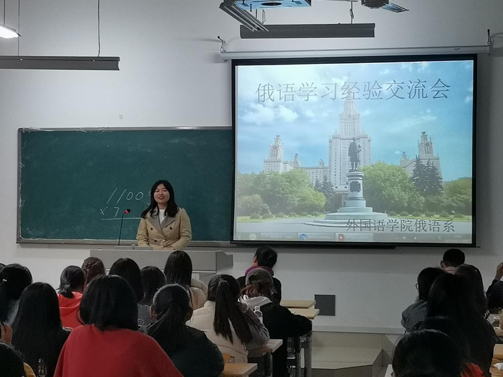首先系主任窦可昀老师从学习态度、学习方法等方面为19级新同学介绍了俄语学习伊始可能遇到的困难。窦可昀老师强调要想学好俄语必须要有端正的学习态度,明确的学习目标。随后17、18级宋明珠、王紫薇、宋家欣、李佳琪同学从听说读写译几个方面,结合自己的学习经验与同学们进行了细致的交流。19级同学提问踊跃,各位学长为他们悉心解答,新生老生就专业学习的各个方面相互探讨,交流会现场气氛活跃。最后本次活动在同学们的掌声中落下帷幕。