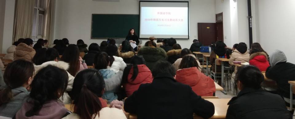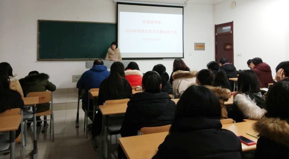 2月26日,bbin游戏官网的官方于博文楼225教室召开了2019年春季实习支教动员大会。党总支副总支书记李想、副院长崔静静、实习支教技术指导老师张寿峰及即将参加春季实习支教的2016级英语师范专业全体学生参加了动员会,动员会由副院长崔静静主持。