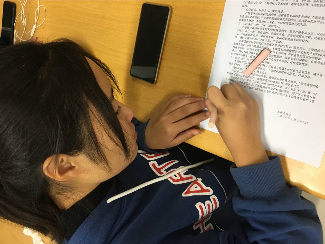 班会首先由班主任宣讲此次班会的主题内容、目的以及诚信的重要性。会议重点强调了学术诚信、经济诚信、生活诚信、诚信贷款与受助、诚信上网和诚信就业等方面的必要性。接下来,由学习委员组织在坐同学自愿签署“诚信承诺书”。在坐学生承诺在学习、生活等各个方面严格要求自己,诚信做人、诚信处事,使自己成长为一名有诚信的大学生。
