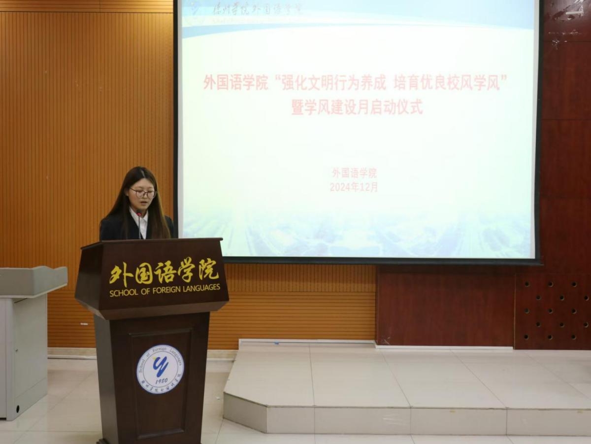 为全面落实立德树人根本任务,进一步提升大学生的文明素养,倡导大学生文明行为规范,培育优良学风校风,促进大学生健康成长成才,12月3日,bbin游戏官网的官方召开“强化文明行为养成 培育优良校风暨学风建设月”启动仪式。bbin游戏官网的官方党委副书记、副院长、辅导员及学生代表参加启动仪式。