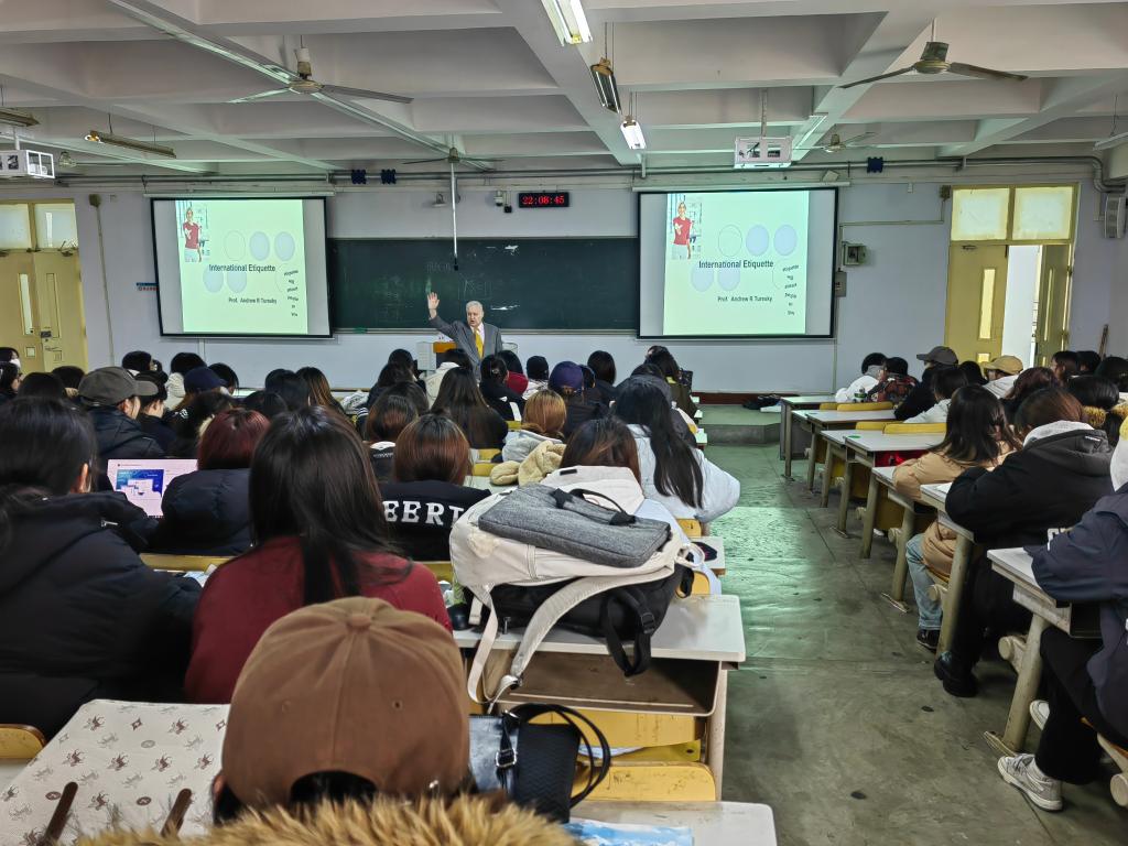 为提升学生的跨文化交流能力,推动应用型国际化人才培养,bbin游戏官网的官方于12月12日和13日邀请了两位外籍文教专家,走进2024级大学英语课堂,为学生带来了精彩纷呈的系列讲座,内容涵盖了文化、商务、科技、健康等多个领域。