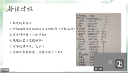 最后,魏婷娜老师结合自身经历和一系列案例强调了考研对提升个人学历、就业竞争力的重要性,赵天慧老师重点介绍了出国留学的相关事宜,包括留学优势、院校专业选择、材料准备、申请流程等,鼓励同学们积极申报,为提升个人专业素养、拓展职业方向、增强就业竞争力、促进个人成长而努力。