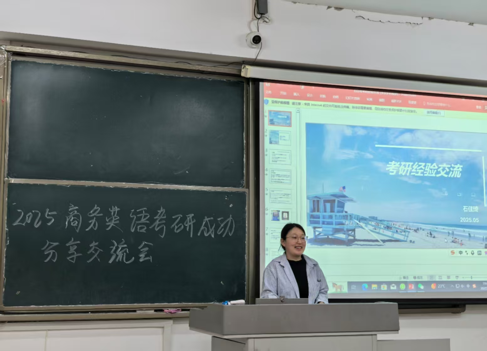 5月8日,商务英语系组织考研专场交流会,邀请了考取天津财经大学英语笔译专业硕士研究生的潘颖同学、考取江苏师范大学学科教学(英语)专业硕士研究生的石佳琦同学和考取中国民航大学英语笔译专业硕士研究生的曹宏宇同学依次做经验分享。三位同学从择校、备考策略、时间管理、作息等多个方面进行了分享,并推荐了一些有用的公众号和学习资源,强调了科学规划考研和提升备考效能的重要性。