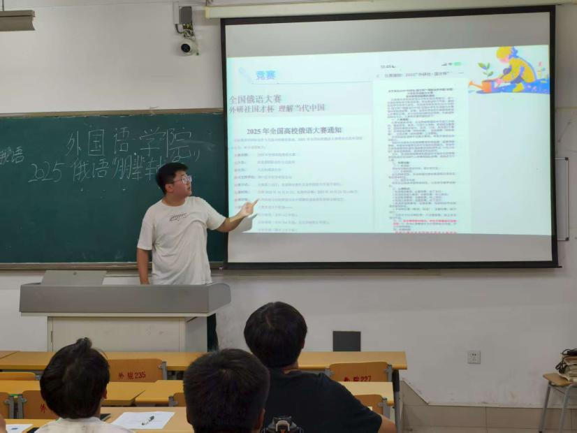 为更好帮助2025级俄语班的新生对大学生活进行科学规划以及对专业的了解,俄语系于2025年9月15日晚7点在博文楼111和219教室举办了“朋辈面对面 互助成长的力量”经验分享会,此次活动邀请了2022级俄语班李恒洋同学和2023级俄语班魏钰璇同学进行经验分享。