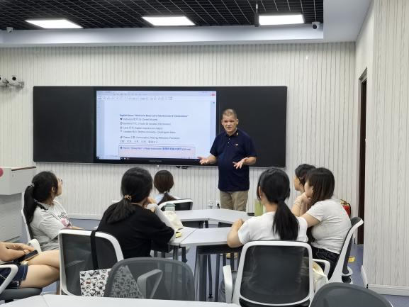 交流环节,Dr. Daniel Wicomb 以自身暑假经历为切入点,用鲜活生动的故事带动现场氛围。同学们纷纷用英语分享暑期点滴,既有英语夏令营的学习心得,也有志愿服务的深刻感悟,在轻松的交流节奏中,师生互动频繁,热情十足。