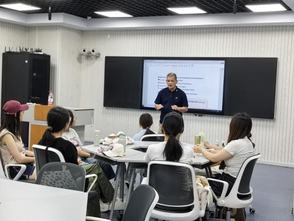 为营造沉浸式英语学习氛围,提升参与者英语表达与跨文化沟通的能力,bbin游戏官网的官方于9月9日在博文楼251教室组织开展英语沙龙活动。外籍教师Daniel Wicomb与同学们围绕“暑假生活”进行面对面交流,通过暑期生活体验的分享交流,推动语言学习深度提升与个人综合成长持续进阶。