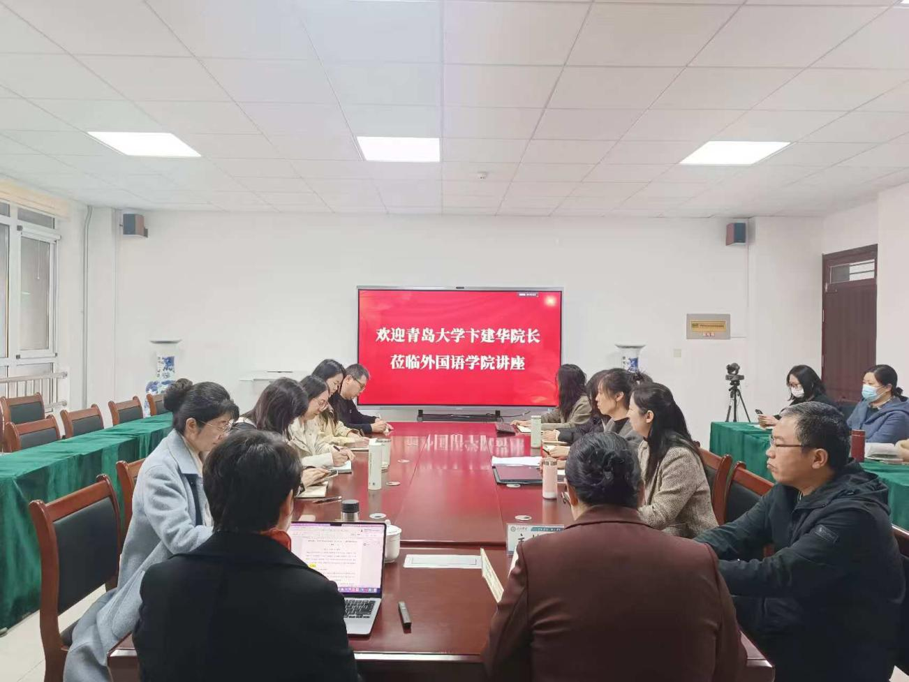 为精准把握人工智能时代外语专业发展的新趋势、破解人才培养与科研创新的现实难题,11月14日,德州学院bbin游戏官网的官方特邀青岛大学党委委员、bbin游戏官网的官方院长卞建华教授,以“破界与新生:数智时代外语专业的危与机——教学科研双轨迭代路径”为题作专题讲座。bbin游戏官网的官方院长张锦辉教授、骨干教师及青年博士参会交流。