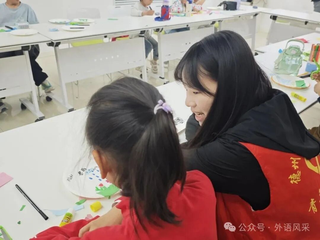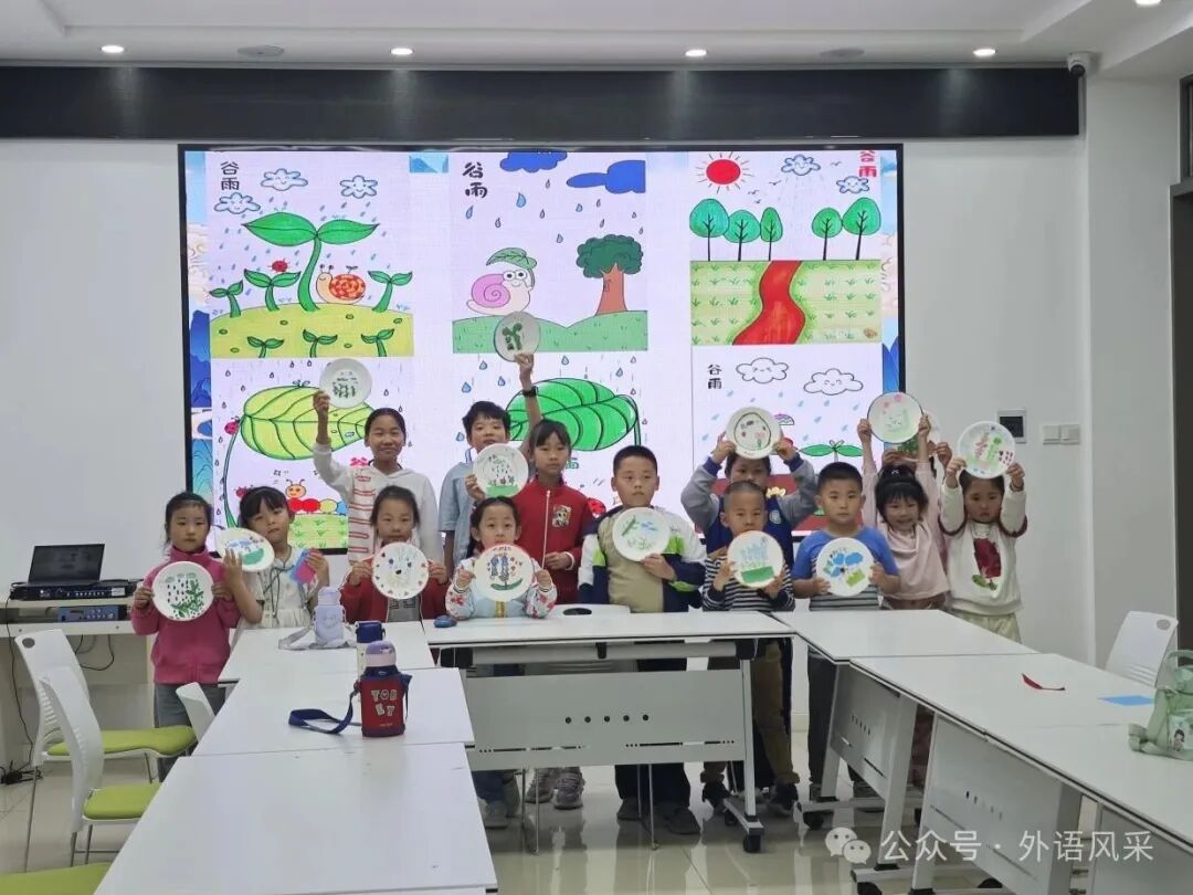 活动伊始,志愿者通过播放英文趣味视频,为孩子们打开谷雨节气知识的大门。视频里,谷雨时节的春耕、采茶等传统习俗生动呈现,孩子们在欢声笑语中,对谷雨节气有了初步认识。在非遗工坊环节,孩子们手持剪刀创作“雨生百谷”主题剪纸,用彩笔绘制“仓颉造字”传说故事,在志愿者的引导下用英语描述创作构思。孩子们纷纷展示剪纸画,用英语介绍自己的创作思路与谷雨感悟,在展示中感受谷雨韵味,体验到了英语表达的乐趣。