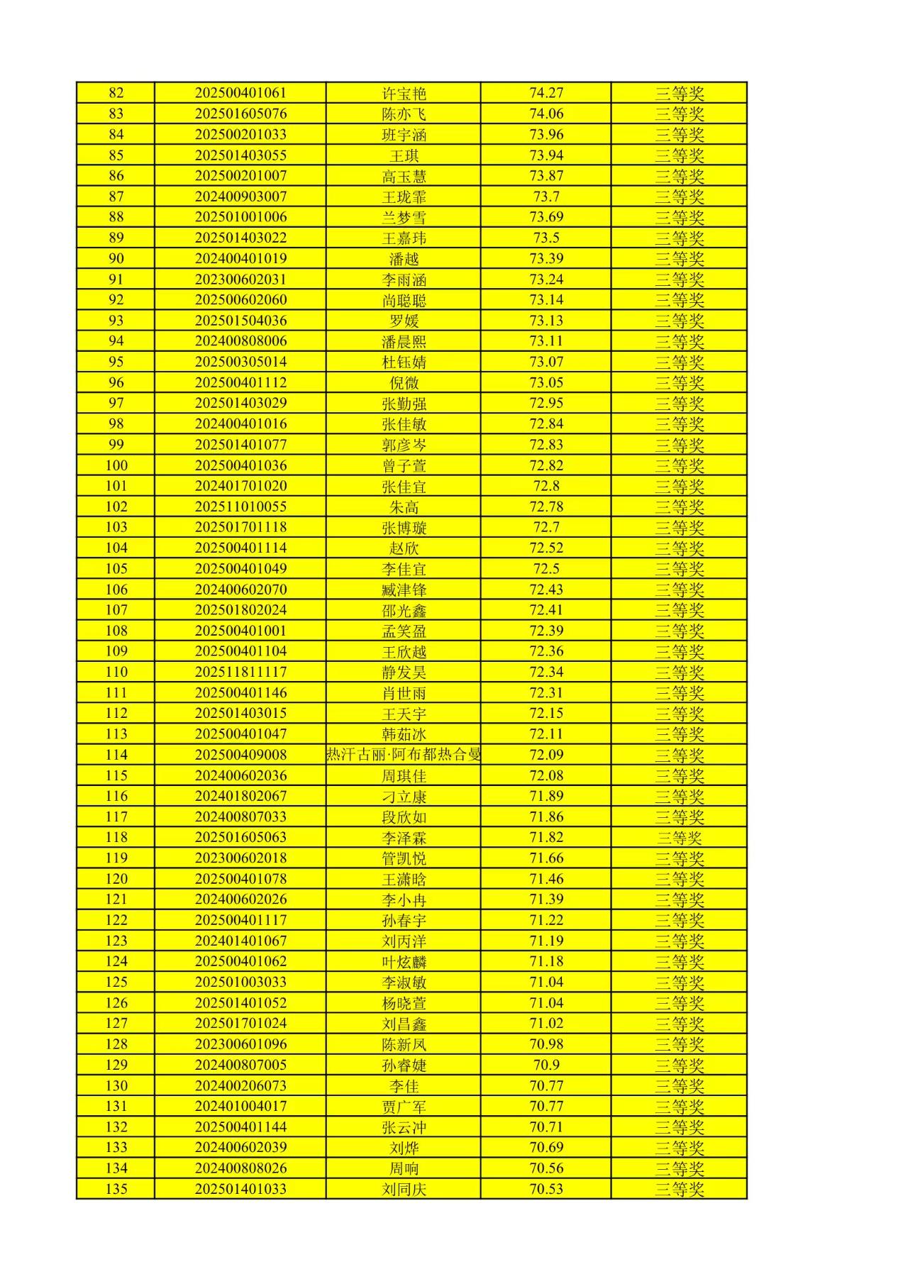 经严格依据做题得分排序,现将获奖结果公示如下: