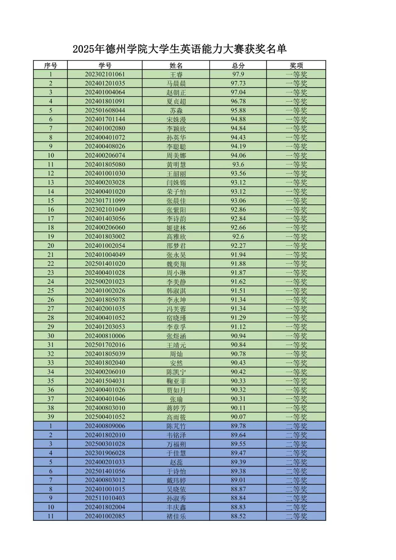 获奖名单详见附件《2025年德州学院大学生英语能力大赛获奖名单》,获奖者后续领奖事宜将另行通知。