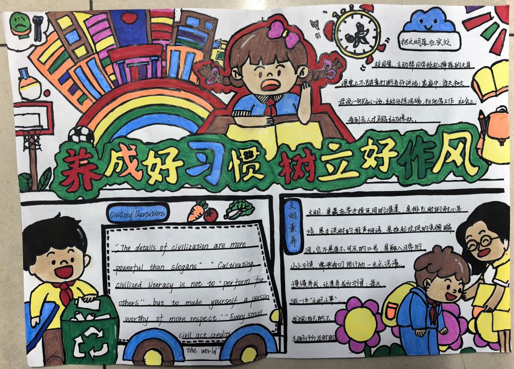 结合外语专业特色,学院于10月30日开展“外语文明行为打卡挑战赛”,全院学生以7天沉浸式打卡模式参与活动,实现外语学习与文明实践的有机融合。10月31日,开展“文明校园,从我做起”主题手抄报创作活动,学生以画笔勾勒文明图景、传递文明理念,让文明教育可视化、具象化。