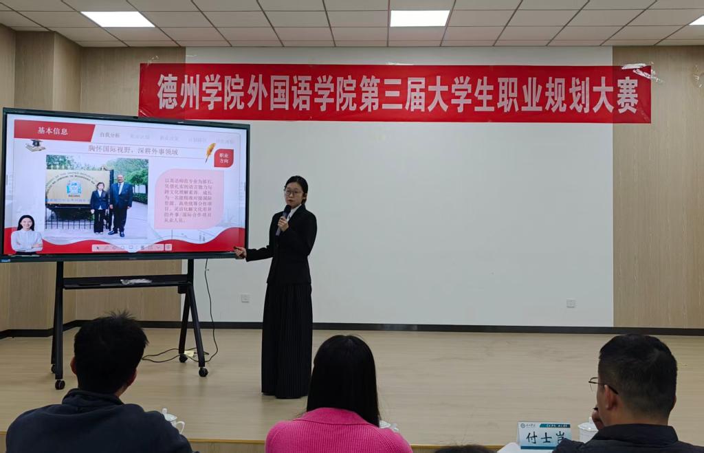 决赛现场分为职业规划展示与现场答辩两个环节,选手们围绕自我认知、职业环境分析、职业目标设定、实施计划等方面,结合外语专业特色,展示了各自的职业规划方案,涵盖翻译、跨境电商、外语教育、国际交流等多个领域。评委老师,针对选手方案的可行性、逻辑性及创新性进行精准点评,并就职业发展路径优化、专业技能提升等问题与选手进行交流并给出指导建议。