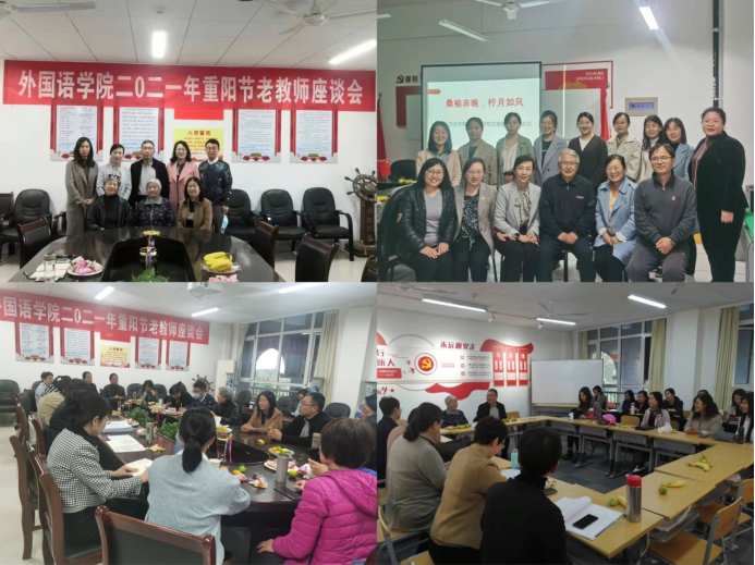 10月12日,在重阳节来临之际,bbin游戏官网的官方把传统节日与党史学习教育相结合,开展重阳节老教师座谈会,邀请bbin游戏官网的官方退休教师徐军、窦汝芬、李玉荣和王建中齐聚一堂,走进各教工党支部,与党员教师共同深入学习贯彻习近平总书记“七一”重要讲话精神,共话珍贵友谊,共谋外院发展。bbin游戏官网的官方主要负责人及党员教师出席参加。