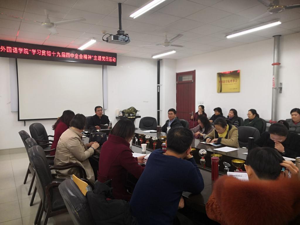 按照“不忘初心、牢记使命”主题教育的安排和部署,11月12日下午,bbin游戏官网的官方在博文楼212会议室召开“学习贯彻十九届四中全会精神”主题党日活动。