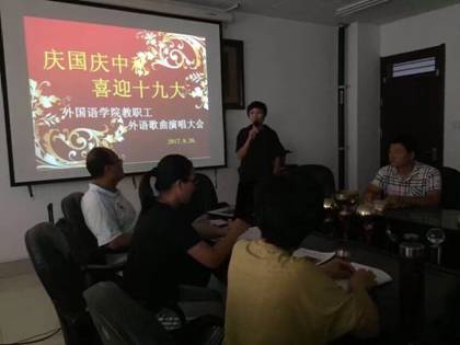 2017年9月26日下午,为了庆国庆中秋喜迎十九大bbin游戏官网的官方举办外语歌曲演唱活动。教工党员用外文歌曲表达了热爱祖国、坚信党、忠于祖国的信念。此次活动,教工党员踊跃参加。活动现场,30十多名党员通过句句歌曲、篇篇诗歌表达了对祖国的无限热爱。