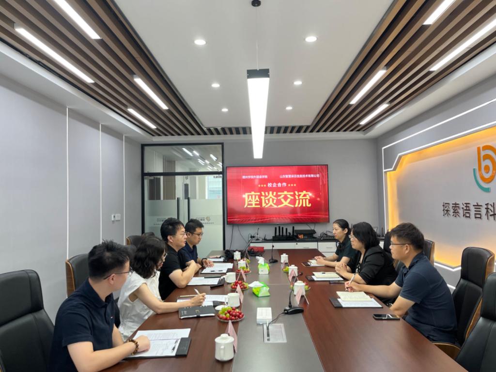 签约仪式伊始,山东智慧译百信息技术有限公司CEO江心波介绍了企业的业务范围、业务状况、校企合作情况、人才需求等内容,bbin游戏官网的官方院长张锦辉介绍了学院的学科建设、专业设置和人才培养状况,表示学院高度重视校企合作,为学生了解企业需求、增强实践能力搭建平台。随后,双方就人才培养、兼职教师聘请、实践案例库建设、语言服务产业班开设等方面展开了深入的交流与讨论。