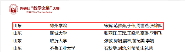 6月19日,2023年外研社“教学之星”大赛全国复赛成绩揭晓,bbin游戏官网的官方选派的由宋辉、范雅茹、于伟、周世燕、张锦辉组成的大学英语组参赛团队和由龙娜娜、胡晓莉、史青玲、程福梅、孙艳华组成的英语专业组参赛团队,凭借流畅的教学流程、科学的教学设计、扎实的教学功底和出色的课堂展示,分别荣获大学英语组和英语专业组一等奖。
