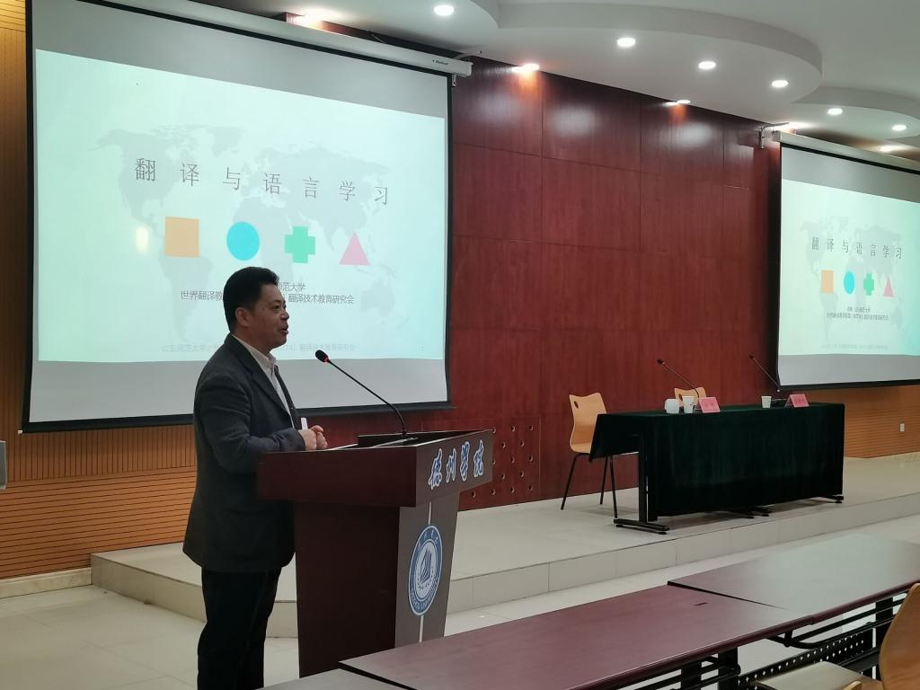 11月13日下午,山东师范大学翻译硕士中心主任徐彬教授来bbin游戏官网的官方开展“翻译与语言学习”专题讲座。本次讲座由bbin游戏官网的官方副院长崔静静主持,学院百余名师生聆听了讲座。