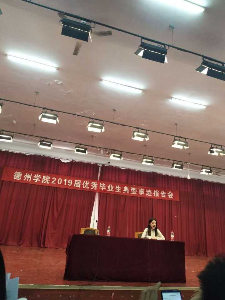 6月19日下午,外院2015级英本二班范霞,代表bbin游戏官网的官方毕业生参加了德州学院2019届优秀毕业生典型事迹报告会。范霞同学在大学期间勤奋刻苦,曾两次获得全国大学生英语竞赛第一名,顺利通过英语专业四级,专业八级考试,并成功考取了中国海洋大学的研究生,会上与同学们讲述了自己的大学生活,对一直以来给予帮助和鼓励的老师和同学表达了感谢,分享了自己的考研经验,给即将考研的同学提了建议: