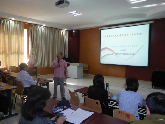 本次讲座紧紧围绕文学翻译实践中的具体问题展开,他从本科生、研究生的课堂翻译作业品评入手,对文学翻译中的问题和策略提出了“译事十法”和“译事十诫”。并从新文科背景下翻译人才培养的角度展开,对本科生培养和教师教学进行了指导。在与听众的互动中,他教授同学们如何应对考研备试,在中西交往中应秉持何种态度和认同。朱教授善于激发人们的积极性和创新思维,其讲座信息量大、语言妙趣横生,师生反响热烈。正如张国强书记所说:“这不仅是一堂简单的翻译课,也是为同学们上的一节思政课,为老师们上的一堂师德课。”