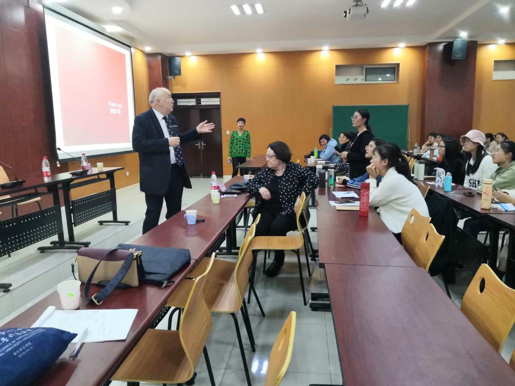 菲尔·哈里斯教授以"International Business Development and Entrepreneurship: Core Reflections "为主题为同学们做了精彩的演讲。教授以幽默的语言介绍了中国近年来的发展情况,让同学们了解到中国经济的飞速发展,进而扩展到如今的经济全球化。同时,教授向同学们介绍了切斯特大学的基本情况,让同学们对学校有所了解,又向同学们讲述了他自己的一些幽默风趣故事,带动了全场氛围。同学们积极踊跃向教授提问问题,教授都一一详细的解答,同学们觉得收获很大。
